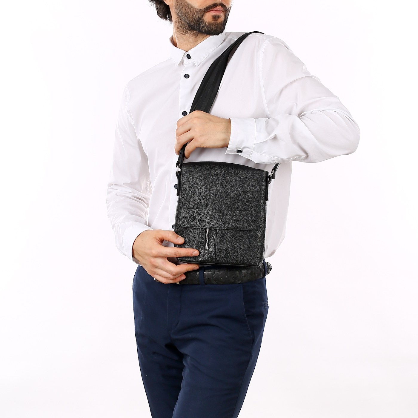 Мужская кожаная барсетка с плечевым ремешком